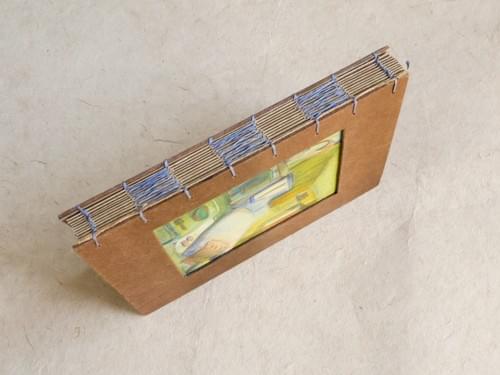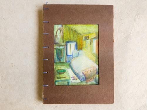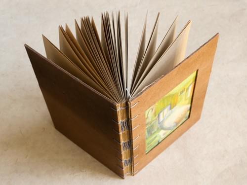 A5 (148mm × 210mm) / Kraft-colored 80lb inner pages / Handmade brown cotton paper cover / Fully hand-painted cover / Hand-stitched with blue-violet waxed thread