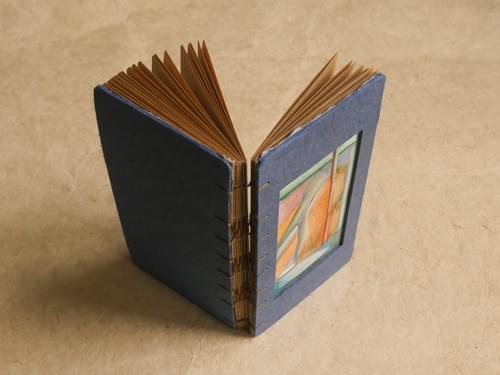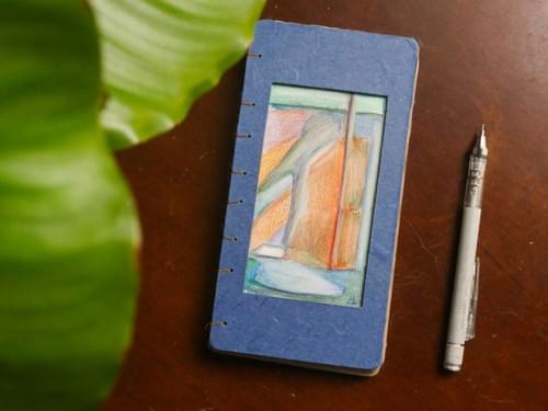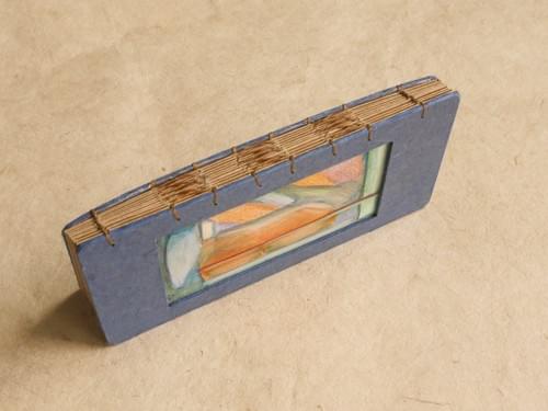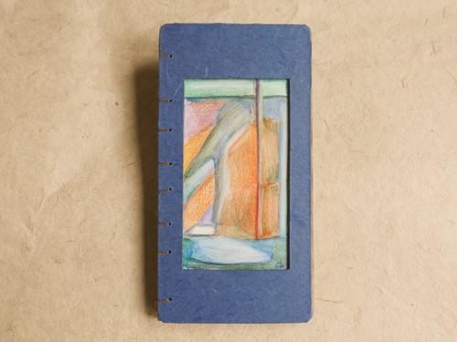 100 × 196mm / Kraft-colored 80lb inner pages / Handmade Unryu blue paper cover / Original hand-painted cover / Hand-stitched with brown waxed thread