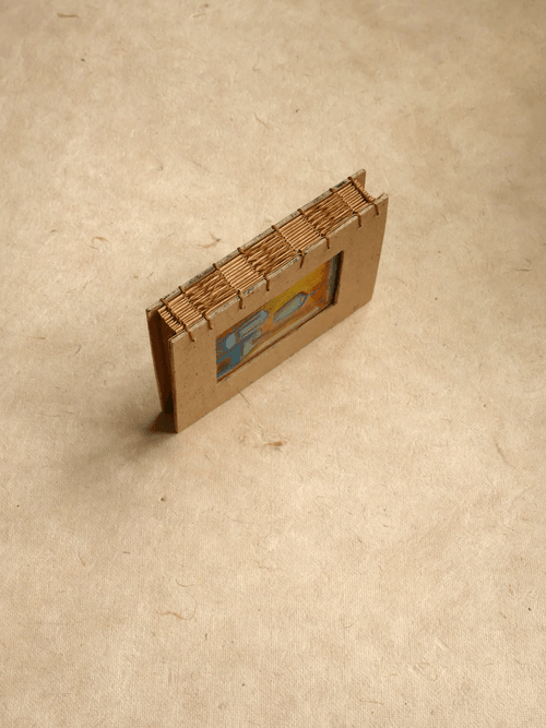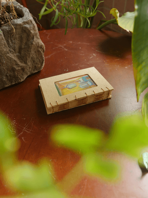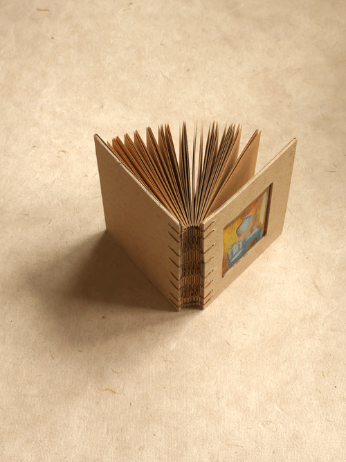 95 × 128mm / Kraft-colored 80lb inner pages / Handmade beige bamboo-cotton paper cover / Fully hand-painted cover / Hand-stitched with brown waxed thread